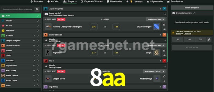 A aposta 8aa oferece aos jogadores a experiência mais conveniente de apostas em eSports!